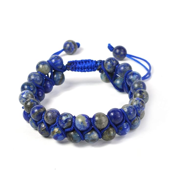 Lapis Lazuli Bracelet Macrame Bracelet Nylon Cord Adjustable Wristband Double line Stone Bracelet for Women & Men