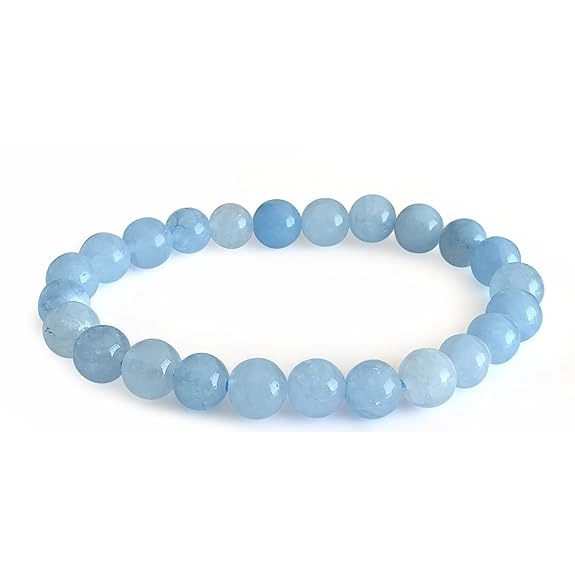 Aquamarine Bracelet with Lab Certificate for Men and Women - Natural Energised Blue Bracelet for Calmness, Money, Communication, Chakra Healing and Positivity - 8MM Beads