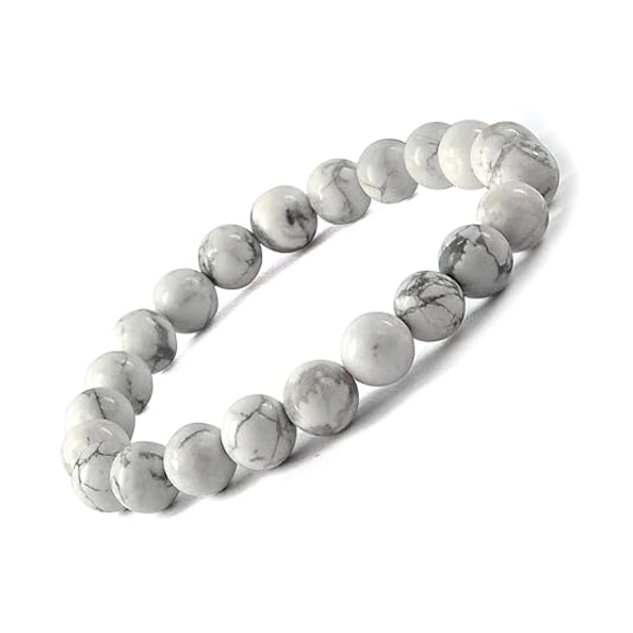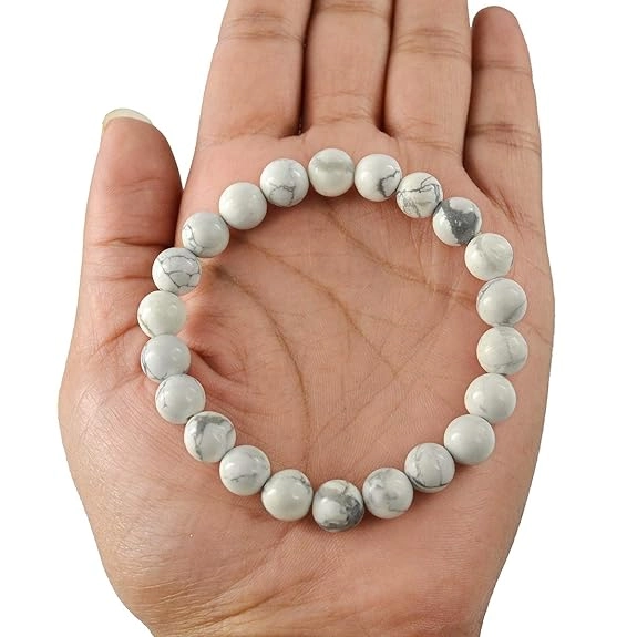 Stretchable Elastic Handmade Natural Certified Howlite Bracelet | Diameter : 2.5 Inch. | Stone Size - 8 mm Natural Healing Stone for Reiki Healing, Crystal Healing, Numerology, Tarot, Astrology, Vastu, Angle Healing & Feng Shui