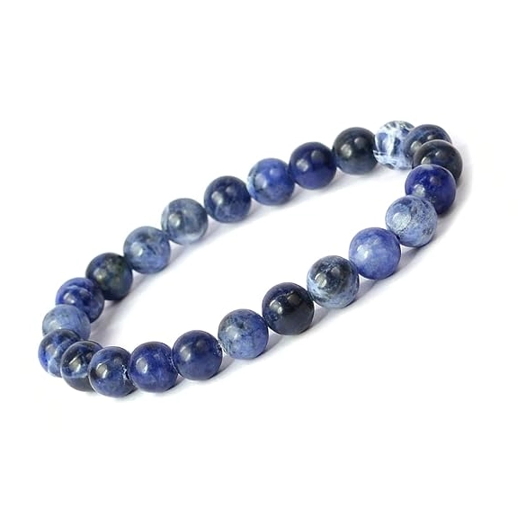 Stretchable Elastic Handmade Natural Certified Sodalite Bracelet | Diameter : 2.5 Inch. | Stone Size - 8 mm | Charged By Reiki Grand Master & Vastu Expert Adorn your wrist with the serene energies of our Sodalite Stone Bracelet—a stylish accessory crafted with genuine Sodalite gemstones known for their association with communication, inner wisdom, and calming vibrations.