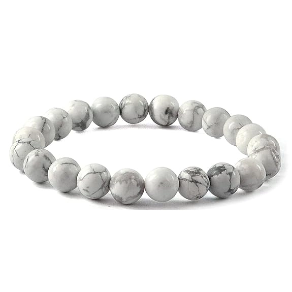 Stretchable Elastic Handmade Natural Certified Howlite Bracelet | Diameter : 2.5 Inch. | Stone Size - 8 mm Natural Healing Stone for Reiki Healing, Crystal Healing, Numerology, Tarot, Astrology, Vastu, Angle Healing & Feng Shui